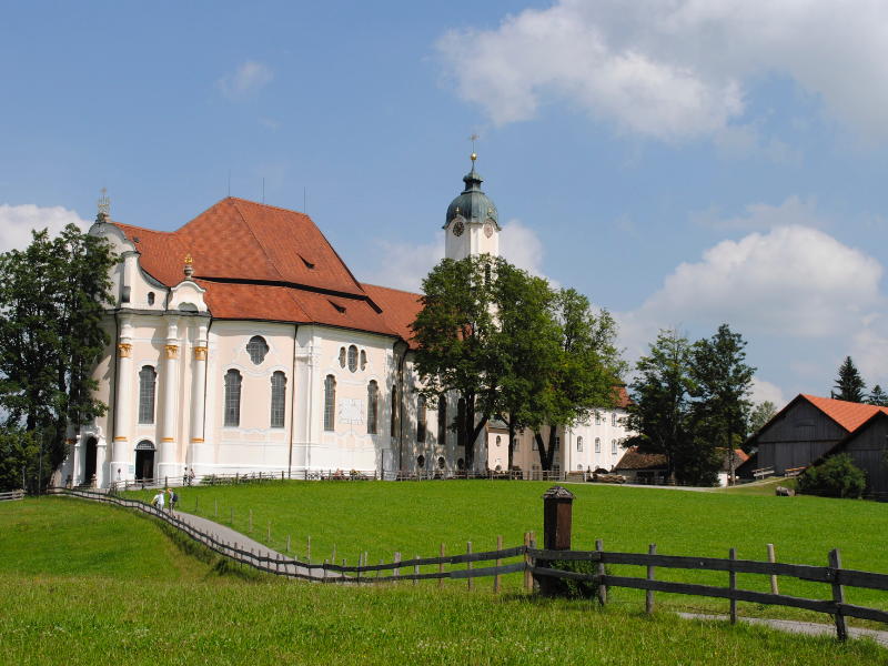 Vandaag wandel je door rustige bossen en schilderachtige heidevelden naar de wereldberoemde UNESCO-site “Kirche in der Wies”. De route gaat vervolgens via de Brettlesweg door bossen en kleurrijke weiden naar de Welfenmünster in Steingaden. Daarna volgt een busrit naar je eindbestemming Buching. Overnachting in Alpchalet Schwanstein of een vergelijkbaar hotel.