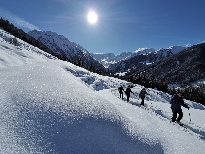 De tochten worden begeleid door een ervaren en gecertificeerde berggids, die bij sneeuw alle ins en outs van de sneeuwschoentechniek uitlegt. Voor de tocht krijg je een grondige instructie over het lopen met sneeuwschoenen, ook wel ‘tennisrackets’ aan je voeten. Elke dag trek je ongeveer vijf uur door de ongerepte natuur van de Zillertaler Alpen.